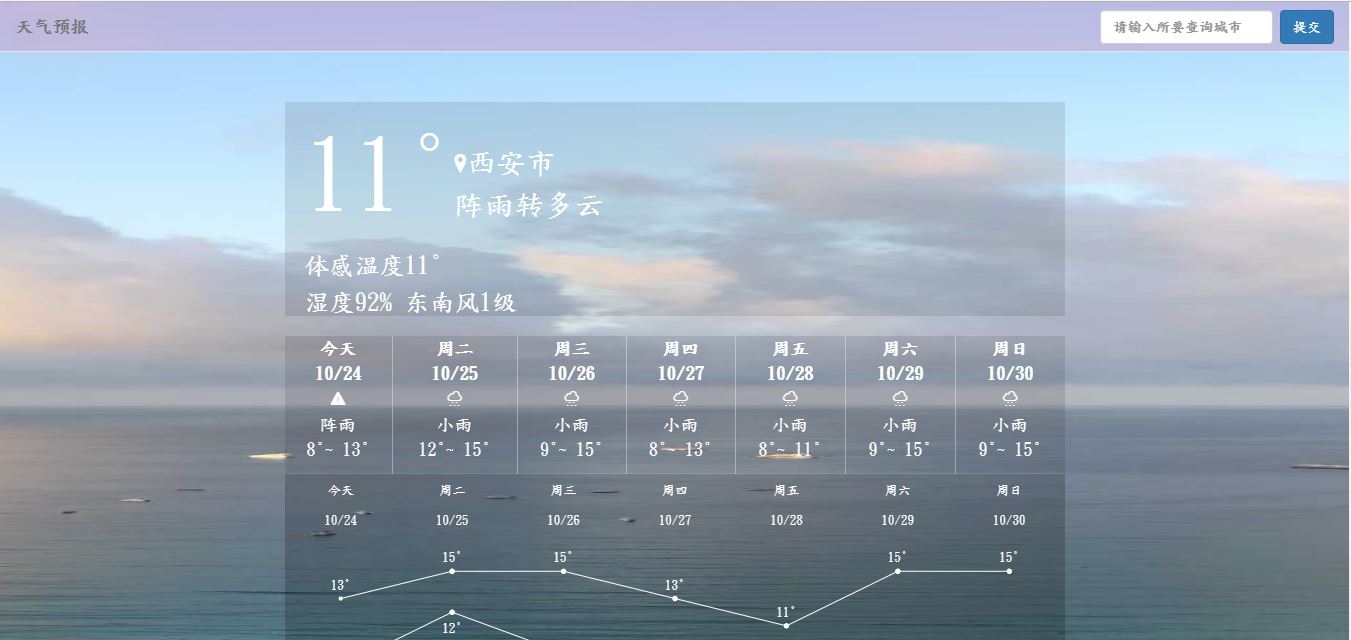 这个天气主要用到了js,让我也是明白,自己的js水平太低了。在这个项目中主要学到了github联合开发,js作用域以及使用了swipe开源库,同时也增加了自己的双滑动的效果,这个项目主要针对的是手机端,手机端具有增加城市的功能,pc端没有